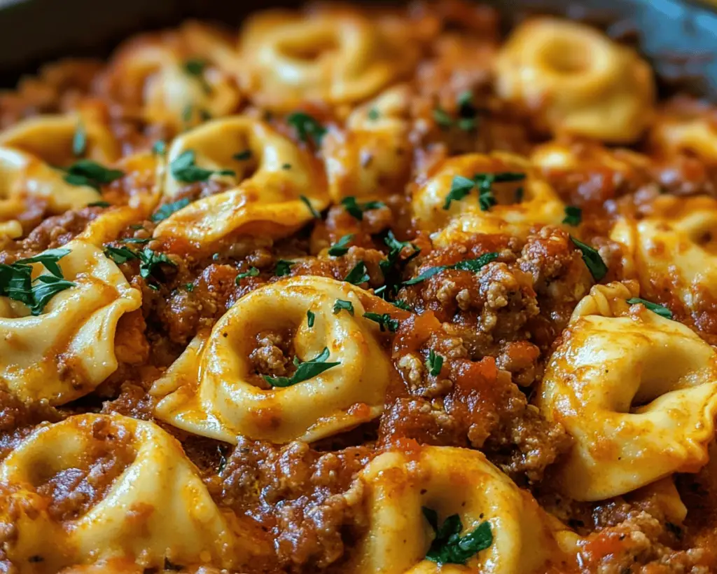 Cheesy Baked Tortellini with Meat Sauce